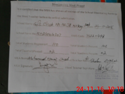 | EMIS Code: 33220498 | Name of School: GPS CHAK NO 166 JB NIKA DAB | |||