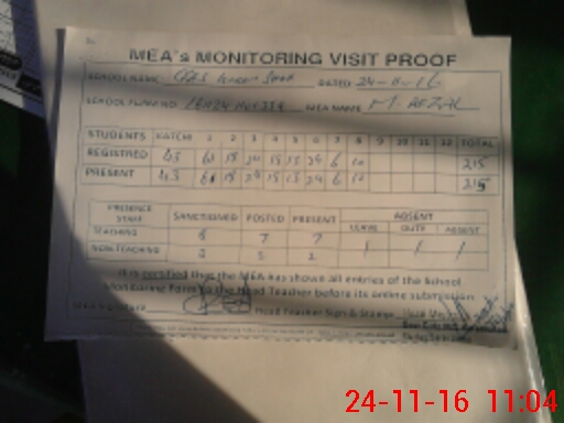 | Attendance Register | Head Teacher | MEA with School | Visit Proof |