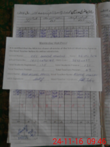 | Attendance Register | Head Teacher | MEA with School | Visit Proof |