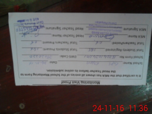 | Attendance Register | Head Teacher | MEA with School | Visit Proof |