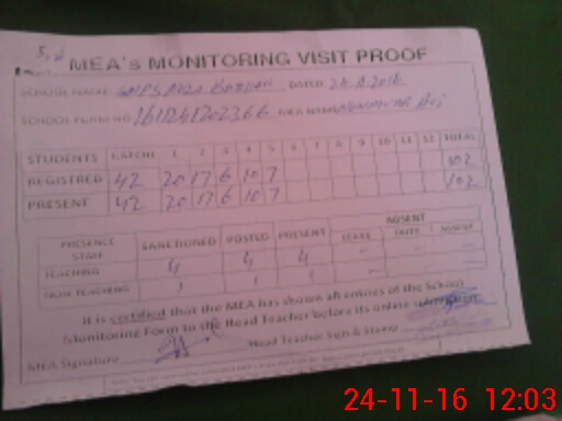 | Attendance Register | Head Teacher | MEA with School | Visit Proof |