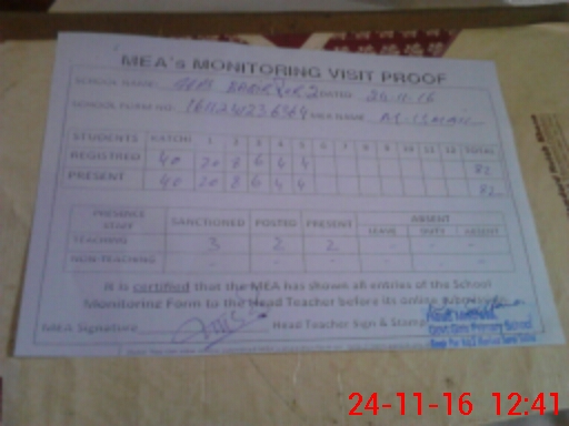 | Attendance Register | Head Teacher | MEA with School | Visit Proof |