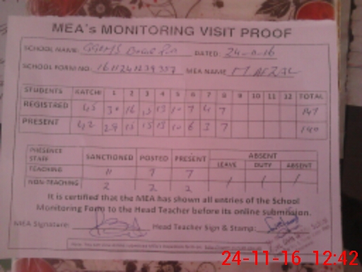| Certified that this School was Inspected by the Undersigned MEA/DMO Today and the Information Stated Above is as Per Record. | |||||