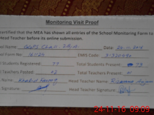 | Certified that this School was Inspected by the Undersigned MEA/DMO Today and the Information Stated Above is as Per Record. | |||||