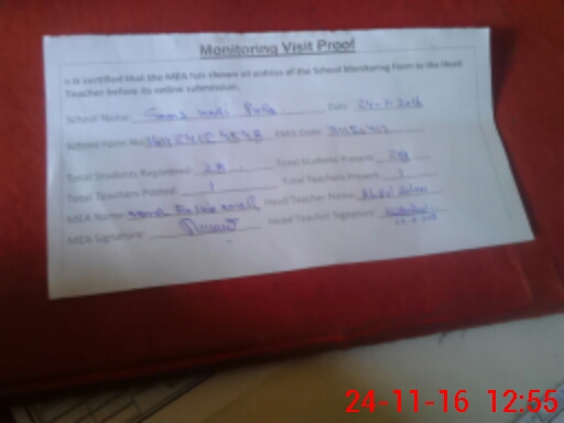 | Remarks (Use Separate Page if Required): SCHOOL IS WORKING IN MASJID | |||||