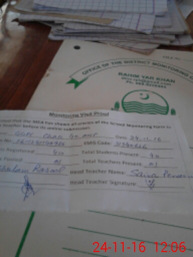 | District: RAHIMYAR KHAN | Tehsil: SADIQABAD | Markaz: KOT SABZAL - FEMALE | Level: Primary | |