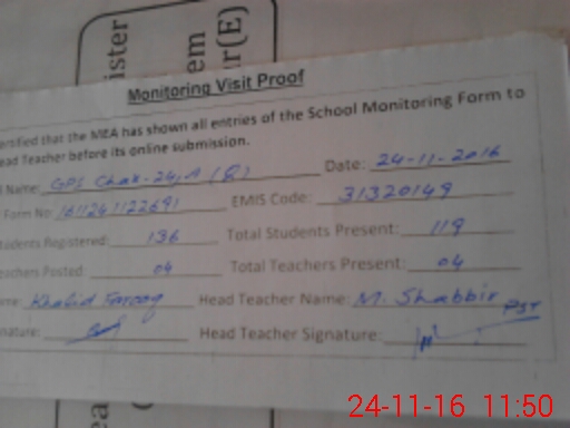 | EMIS Code: 31320149 | Name of School: GPS 24/A QADEEM | |||