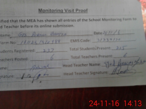 | Attendance Register | Head Teacher | MEA with School | Visit Proof |