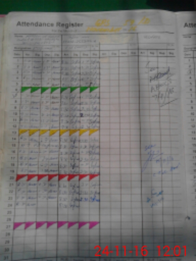 | CNIC | Full Name | Designation | R/C | Absence During Last Calender Month |
