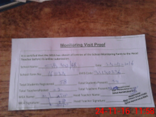 | Attendance Register | Head Teacher | MEA with School | Visit Proof |