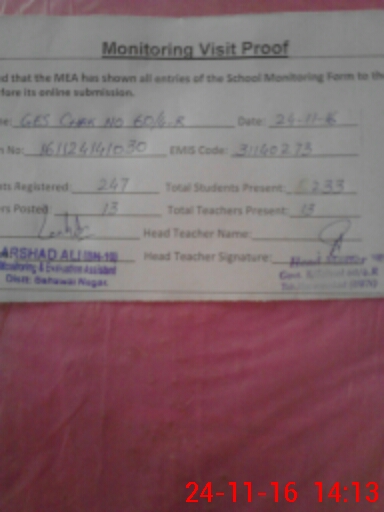 | EMIS Code: 31140273 | Name of School: GES CHAK NO. 60/4-R | |||