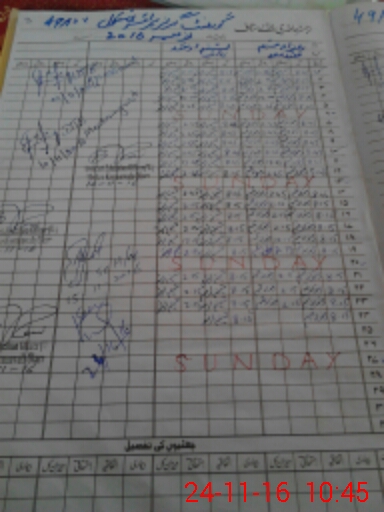 | CNIC | Full Name | Designation | R/C | Absence During Last Calender Month |