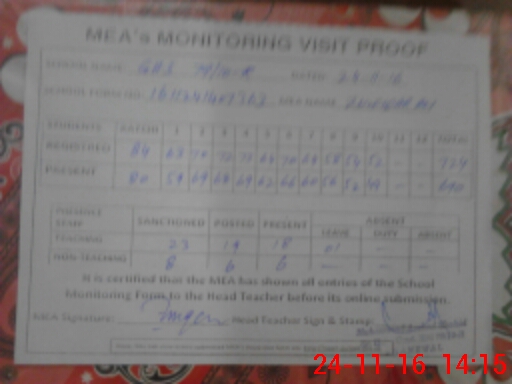 | Attendance Register | Head Teacher | MEA with School | Visit Proof |