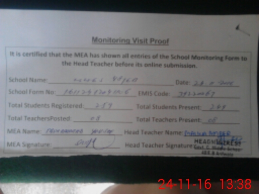 | Certified that this School was Inspected by the Undersigned MEA/DMO Today and the Information Stated Above is as Per Record. | |||||