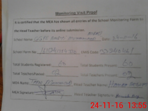 | Certified that this School was Inspected by the Undersigned MEA/DMO Today and the Information Stated Above is as Per Record. | |||||