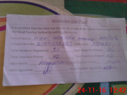 | Certified that this School was Inspected by the Undersigned MEA/DMO Today and the Information Stated Above is as Per Record. | |||||