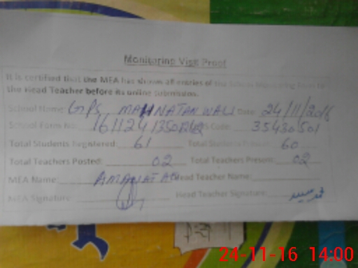 | EMIS Code: 35430501 | Name of School: GPS MAHANTAN WALI | |||