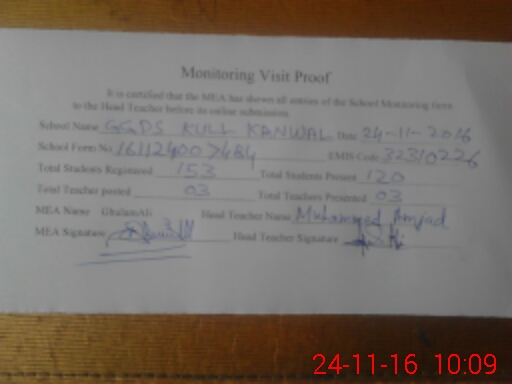 | EMIS Code: 32310226 | Name of School: GGPS KULL KANWAL | |||