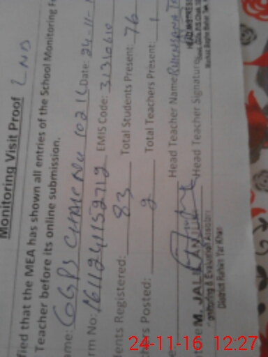 | EMIS Code: 31310610 | Name of School: GGPS CHAK NO 102/1-L | |||