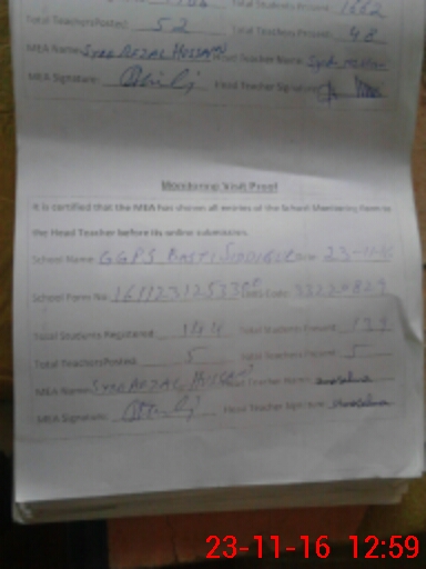 | EMIS Code: 33220829 | Name of School: GGPS SIDDIQUE ABAD | |||