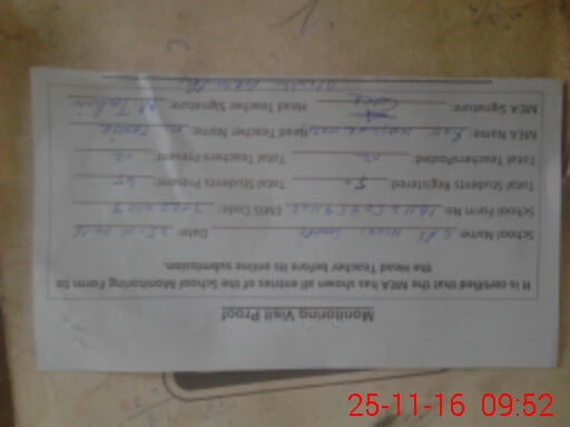 | Attendance Register | Head Teacher | MEA with School | Visit Proof |