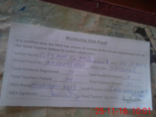 | Attendance Register | Head Teacher | MEA with School | Visit Proof |