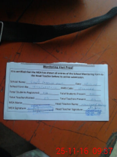 | Attendance Register | Head Teacher | MEA with School | Visit Proof |