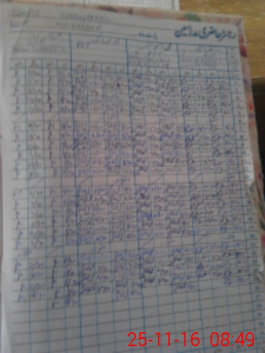 | CNIC | Full Name | Designation | R/C | Absence During Last Calender Month |