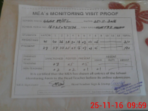 | Attendance Register | Head Teacher | MEA with School | Visit Proof |
