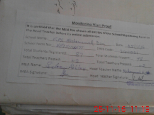 | EMIS Code: 31310261 | Name of School: GPS MUHAMMAD DIN | |||
