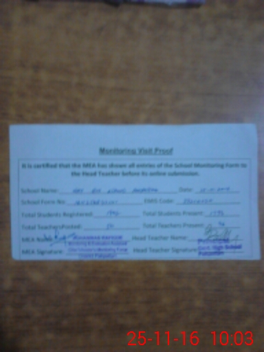 | Certified that this School was Inspected by the Undersigned MEA/DMO Today and the Information Stated Above is as Per Record. | |||||