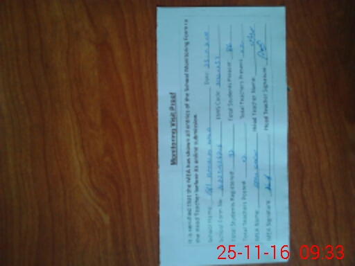 | Attendance Register | Head Teacher | MEA with School | Visit Proof |