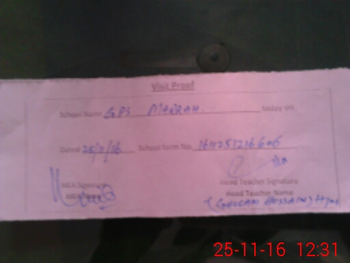 | Attendance Register | Head Teacher | MEA with School | Visit Proof |