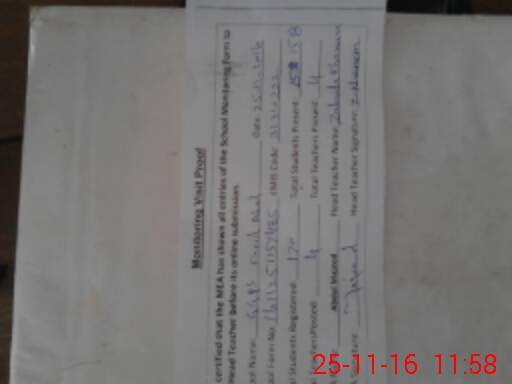 | Attendance Register | Head Teacher | MEA with School | Visit Proof |