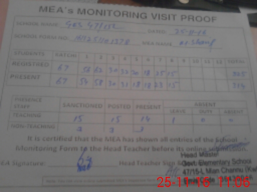 | EMIS Code: 36430046 | Name of School: GES 47/15-L, P/O 124/15-L, MIAN CHANNU | |||