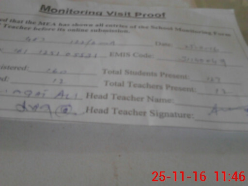 | Attendance Register | Head Teacher | MEA with School | Visit Proof |
