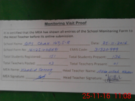 | EMIS Code: 31320999 | Name of School: GPS CHAK NO.147/5-R CHOLISTAN | |||