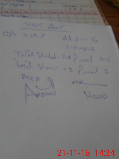 | Attendance Register | Head Teacher | MEA with School | Visit Proof |