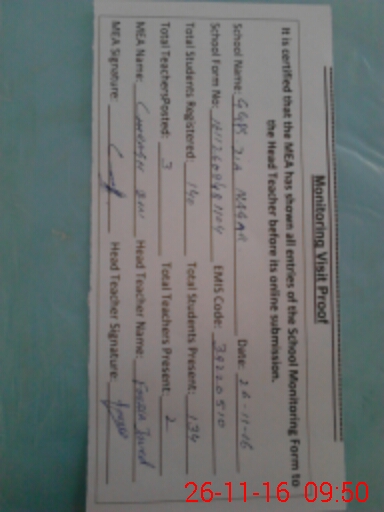 | Certified that this School was Inspected by the Undersigned MEA/DMO Today and the Information Stated Above is as Per Record. | |||||