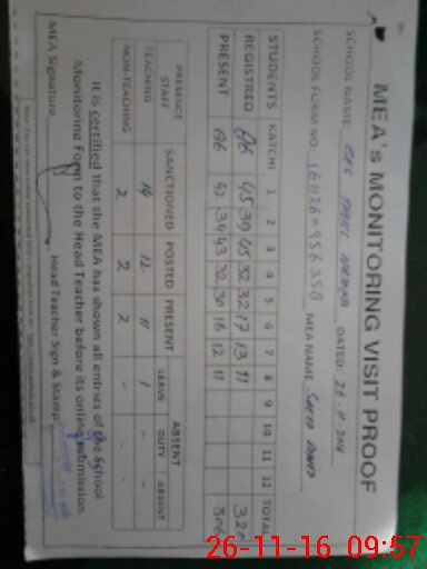 | Monitoring Date: 26-11-2016 | Start Time: 26-11-2016 08:53 AM | End Time: 26-11-2016 10:02 AM | Name of MEA: Sa**** Ah**** | |