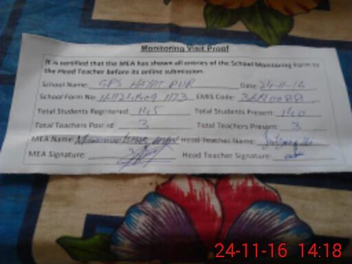 | EMIS Code: 36610088 | Name of School: GPS HAYAT PUR | |||