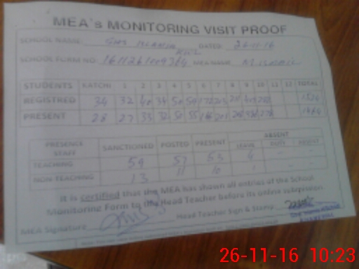 | Certified that this School was Inspected by the Undersigned MEA/DMO Today and the Information Stated Above is as Per Record. | |||||