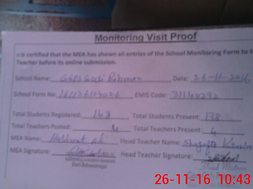 | EMIS Code: 31140292 | Name of School: GGPS GODI REHMAN HAROON ABAD | |||