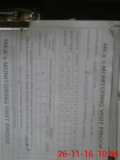 | Monitoring Date: 26-11-2016 | Start Time: 26-11-2016 09:19 AM | End Time: 26-11-2016 10:48 AM | Name of MEA: M.Is**** (S**** 03**** | |