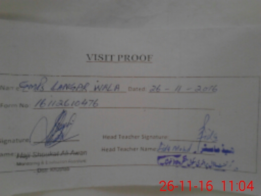 | EMIS Code: 38210285 | Name of School: GMPS LANGAR WALA | |||