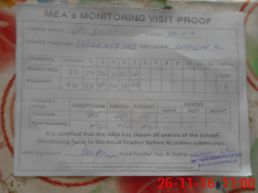 | Attendance Register | Head Teacher | MEA with School | Visit Proof |