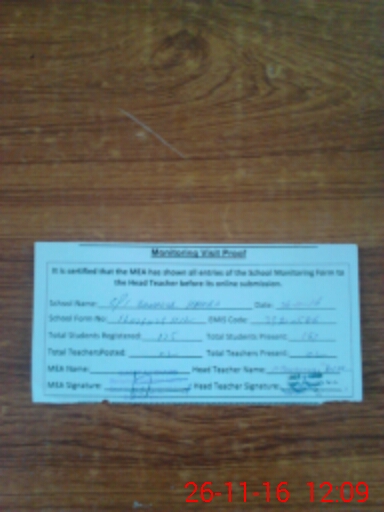 | Attendance Register | Head Teacher | MEA with School | Visit Proof |
