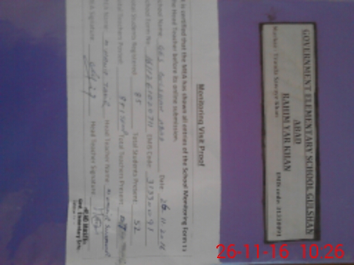 | EMIS Code: 31330091 | Name of School: GES GULSHAN ABAD | |||