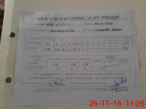 | Attendance Register | Head Teacher | MEA with School | Visit Proof |