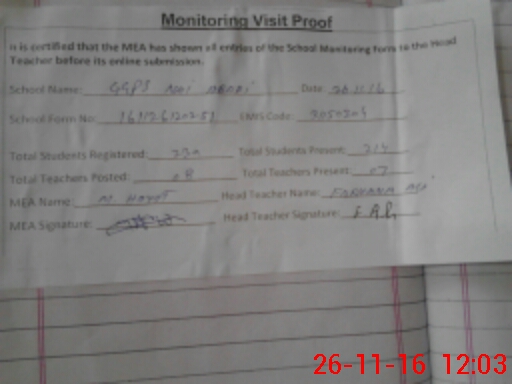| Attendance Register | Head Teacher | MEA with School | Visit Proof |